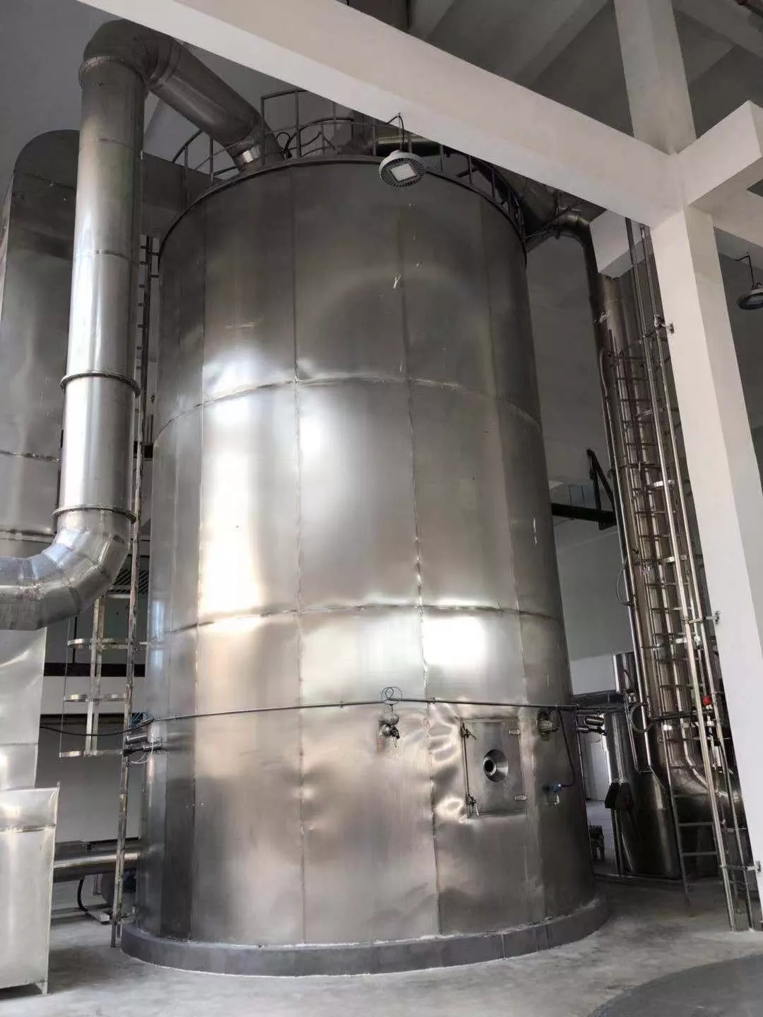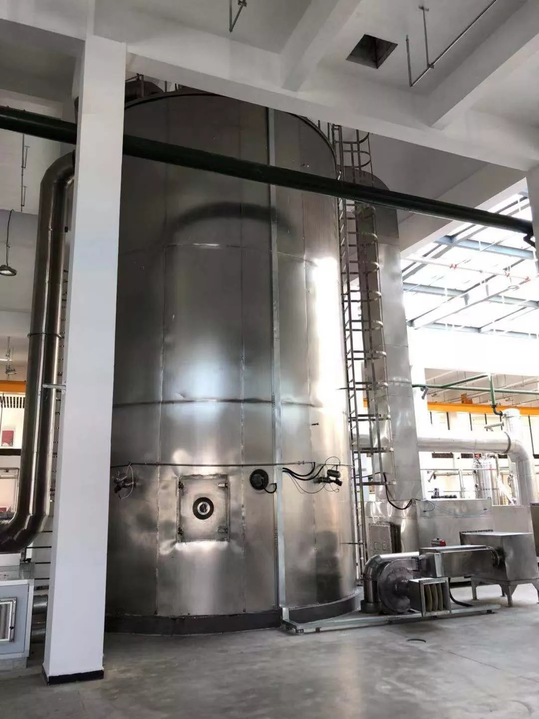 塔內(nèi)設(shè)有固定流化床、霧化噴頭、分離器和空氣循環(huán)系統(tǒng),物料在原料容器中呈環(huán)形流化狀態(tài),與加熱空氣預(yù)熱和混合,將料液溶液霧化噴入,使若干粒子聚集成含有料液的團(tuán)粒,由于熱空氣對物料的不斷干燥,使得團(tuán)粒中水分蒸發(fā),此過程不斷重復(fù)進(jìn)行,形成理想的、均勻的顆粒。